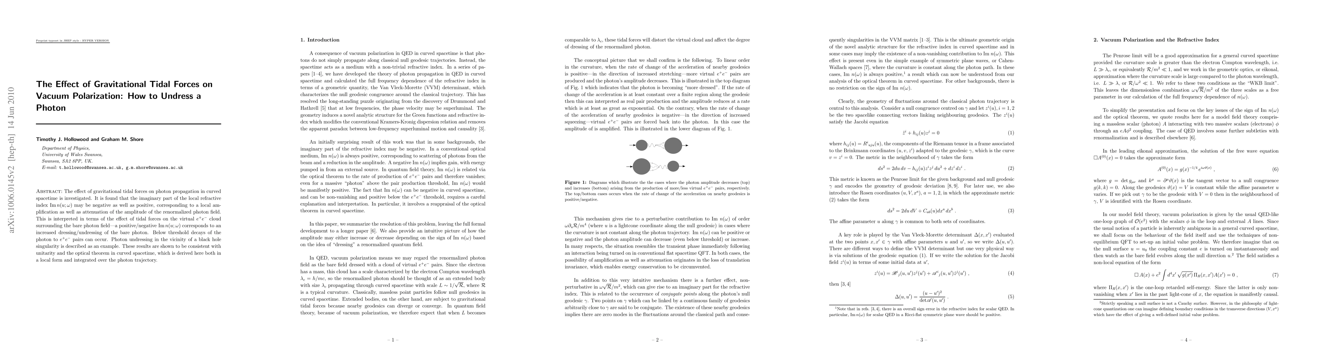 The effect of gravitational tidal forces on photon propagation in curved spacetime is investigated. It is found that the imaginary part of the local refractive index Im n(u;w) may be negative as well as positive, corresponding to a local amplification as well as attenuation of the amplitude of the renormalized photon field. This is interpreted in terms of the effect of tidal forces on the virtual e^+e^- cloud surrounding the bare photon field---a positive/negative Im n(u;w) corresponds to an increased dressing/undressing of the bare photon. Below threshold decays of the photon to e^+e^- pairs can occur. Photon undressing in the vicinity of a black hole singularity is described as an example. These results are shown to be consistent with unitarity and the optical theorem in curved spacetime, which is derived here both in a local form and integrated over the photon trajectory.