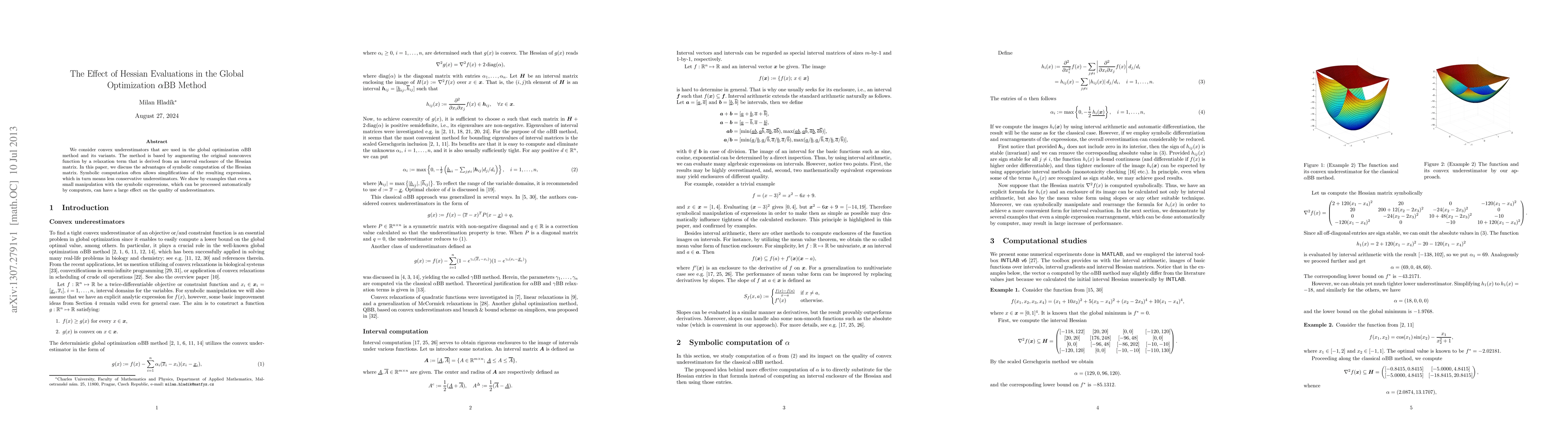 We consider convex underestimators that are used in the global optimization {\alpha}BB method and its variants. The method is based by augmenting the original nonconvex function by a relaxation term that is derived from an interval enclosure of the Hessian matrix. In this paper, we discuss the advantages of symbolic computation of the Hessian matrix. Symbolic computation often allows simplifications of the resulting expressions, which in turn means less conservative underestimators. We show by examples that even a small manipulation with the symbolic expressions, which can be processed automatically by computers, can have a large effect on the quality of underestimators.