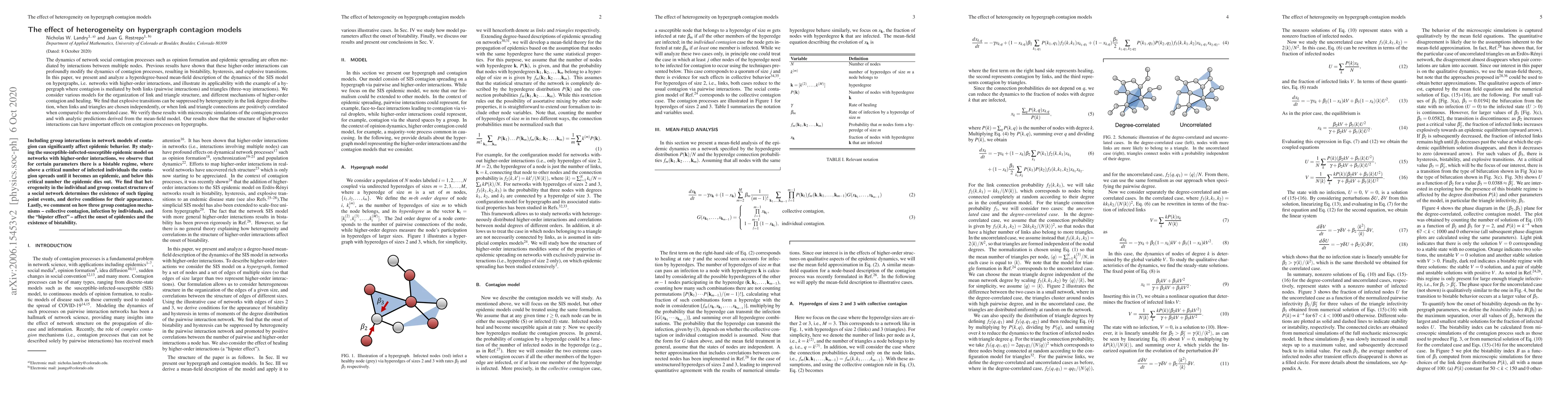 The paper presents a detailed analysis of contagion dynamics on hypergraphs, introducing a hyperdegree-based mean-field model and examining the effects of heterogeneity in link and triangle structures on contagion processes.