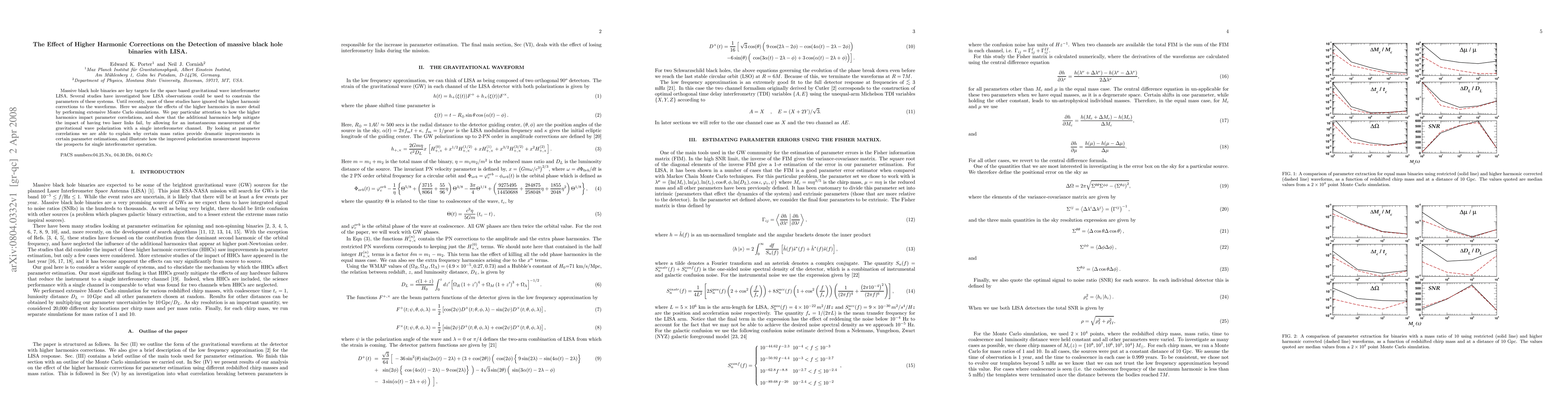 The paper presents detailed analysis of higher harmonic corrections on LISA's parameter estimation for massive black hole binaries, revealing significant improvements in parameter accuracy and mitigating the impact of potential laser link failures.