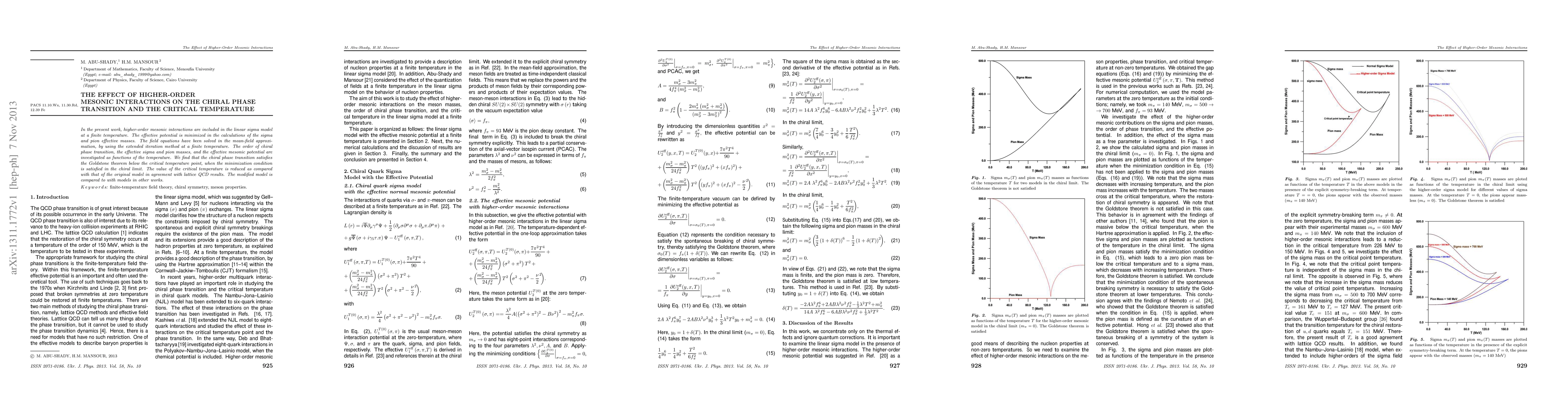In the present work, higher-order mesonic interactions are included in the linear sigma model at a finite temperature. The effective potential is minimized in the calculations of the sigma and pion effective masses. The field equations have been solved in the mean-field approximation, by using the extended iteration method at a finite temperature. The order of chiral phase transition, the effective sigma and pion masses, and the effective mesonic potential are investigated as functions of the temperature. We find that the chiral phase transition satisfies the Goldstone theorem below the critical temperature point, when the minimization condition is satisfied in the chiral limit. The value of the critical temperature is reduced as compared with that of the original model in agreement with lattice QCD results. The modified model is compared to with models in other works.