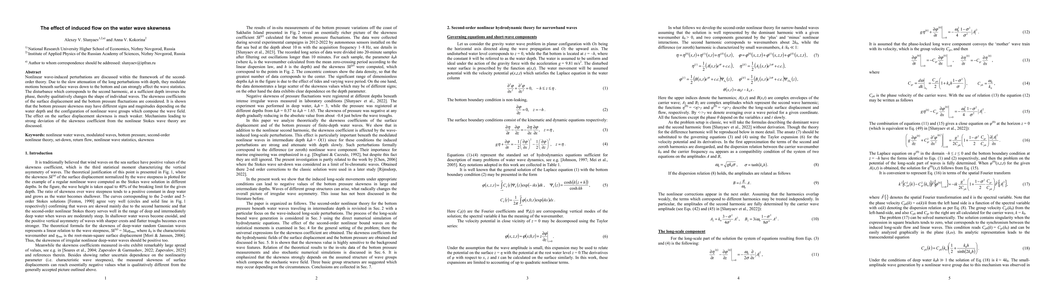 Nonlinear wave-induced perturbations are discussed within the framework of the second-order theory. Due to the slow attenuation of the long perturbations with depth, they modulate motions beneath surface waves down to the bottom and can strongly affect the wave statistics. The disturbance which corresponds to the second harmonic, at a sufficient depth inverses the phase, thereby qualitatively changes the shape of individual waves. The skewness coefficients of the surface displacement and the bottom pressure fluctuations are considered. It is shown that the bottom pressure skewness may have different signs and magnitudes depending on the water depth and the configuration of nonlinear wave groups which compose the wave field. The effect on the surface displacement skewness is much weaker. Mechanisms leading to strong deviation of the skewness coefficient from the nonlinear Stokes wave theory are discussed.