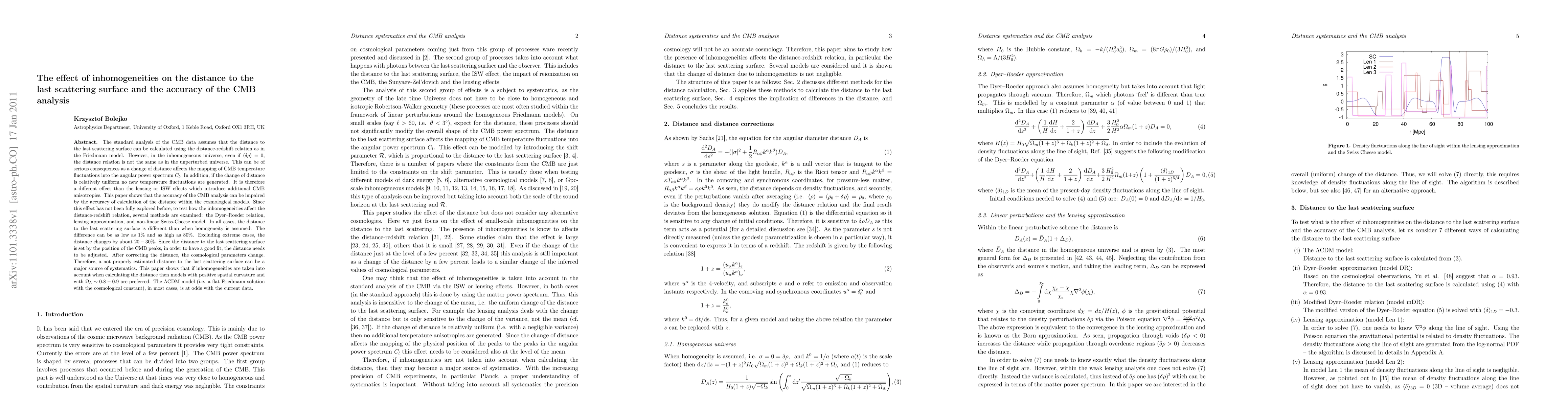 Inhomogeneities in the universe can affect the distance to the last scattering surface of cosmic microwave background radiation, potentially leading to inaccurate cosmological parameter estimates.