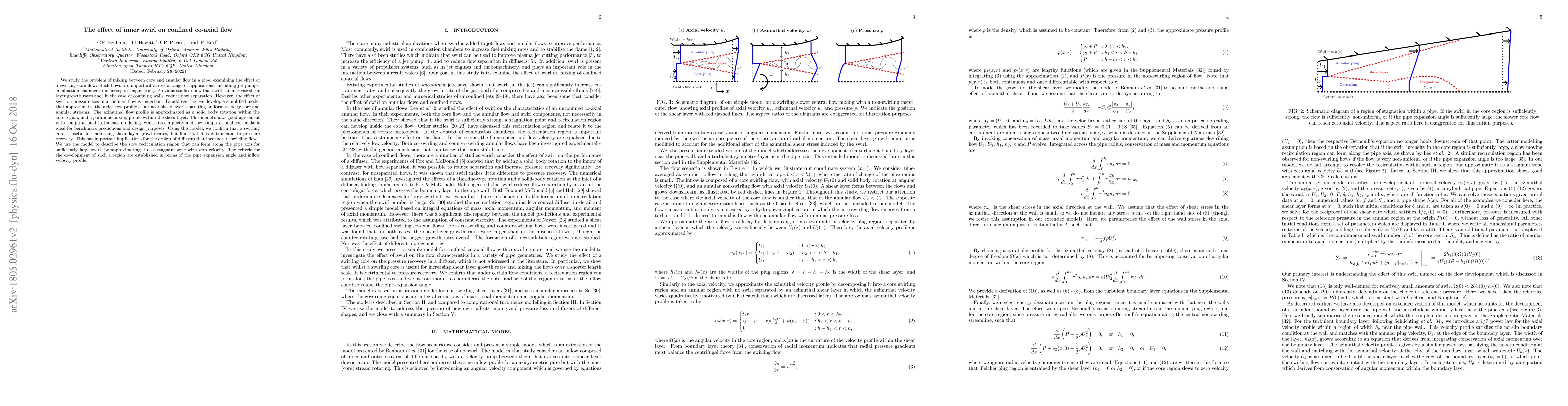 This paper investigates the impact of inner swirl on confined co-axial flow in pipes, focusing on mixing between core and annular streams. It finds that while swirl enhances shear layer growth rates, it negatively affects pressure recovery, with significant implications for diffuser design.