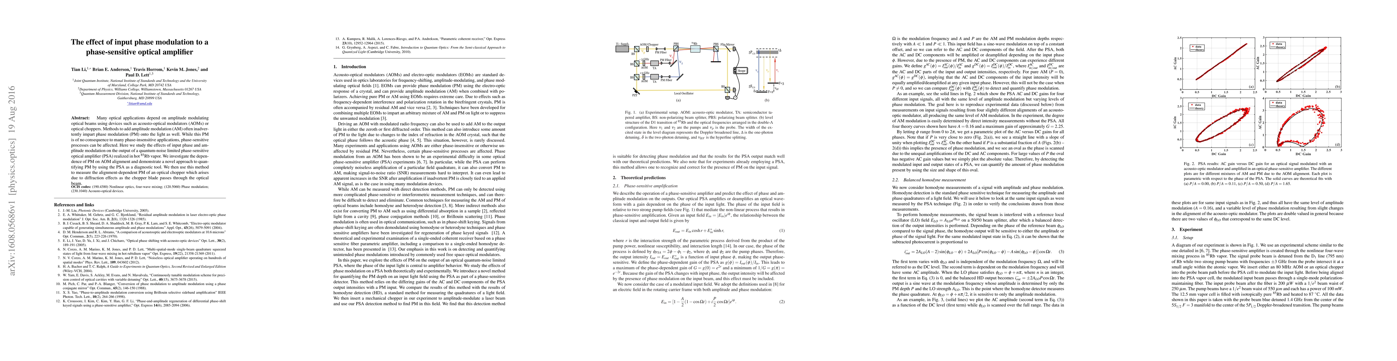 Many optical applications depend on amplitude modulating optical beams using devices such as acousto-optical modulators (AOMs) or optical choppers. Methods to add amplitude modulation (AM) often inadvertently impart phase modulation (PM) onto the light as well. While this PM is of no consequence to many phase-insensitive applications, phase-sensitive processes can be affected. Here we study the effects of input phase and amplitude modulation on the output of a quantum-noise limited phase-sensitive optical amplifier (PSA) realized in hot $^{85}$Rb vapor. We investigate the dependence of PM on AOM alignment and demonstrate a novel approach to quantifying PM by using the PSA as a diagnostic tool. We then use this method to measure the alignment-dependent PM of an optical chopper which arises due to diffraction effects as the chopper blade passes through the optical beam.