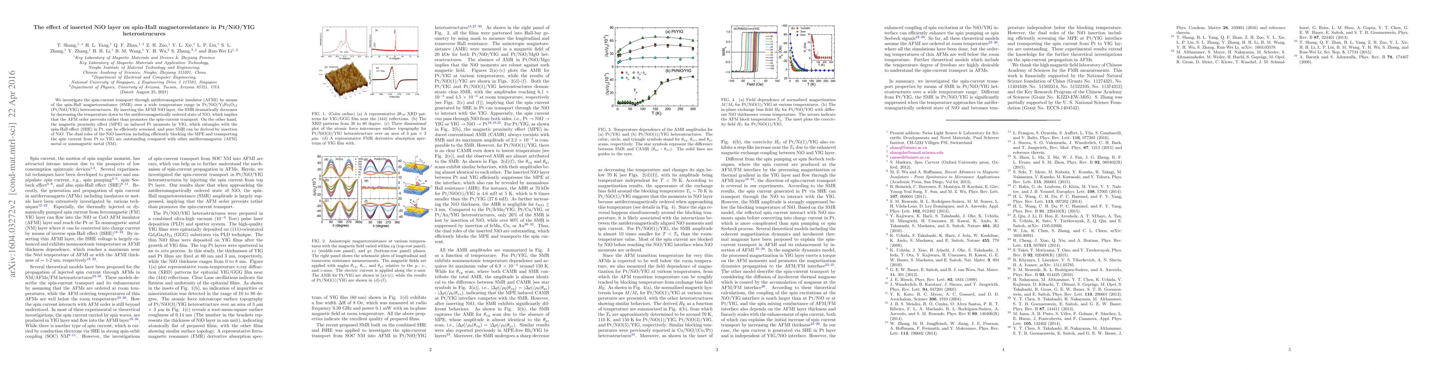 This study explores the impact of inserting a NiO layer on spin-Hall magnetoresistance in Pt/NiO/YIG heterostructures, revealing that NiO reduces SMR by blocking spin-current transport when it enters the antiferromagnetically ordered state. The NiO layer also screens the magnetic proximity effect, allowing for pure SMR derivation.