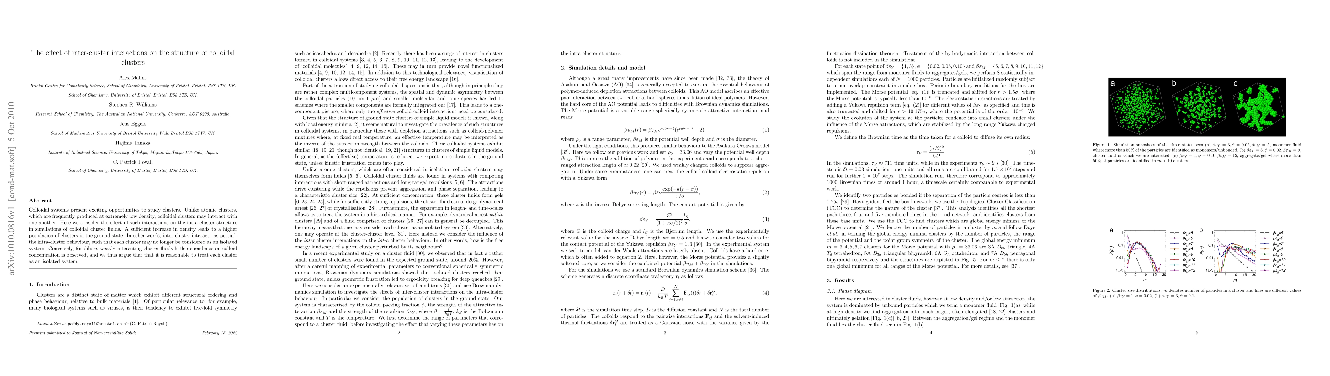 Colloidal clusters can change structure when interacting with each other; at high densities, these interactions affect intra-cluster behavior, while at low densities, they have little impact.