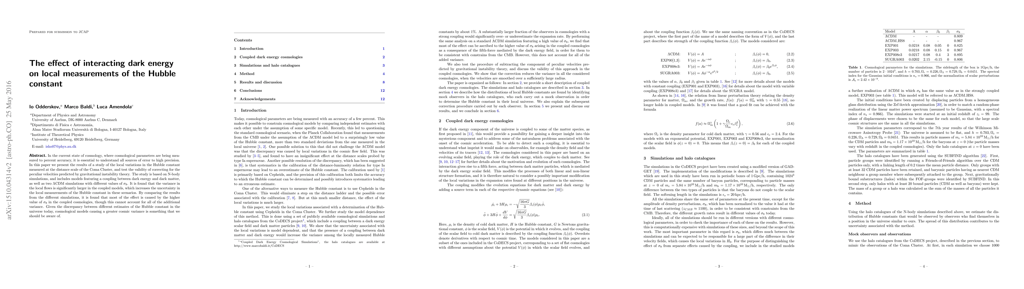 In the current state of cosmology, where cosmological parameters are being measured to percent accuracy, it is essential to understand all sources of error to high precision. In this paper we present the results of a study of the local variations in the Hubble constant measured at the distance scale of the Coma Cluster, and test the validity of correcting for the peculiar velocities predicted by gravitational instability theory. The study is based on N-body simulations, and includes models featuring a coupling between dark energy and dark matter, as well as two $\Lambda$CDM simulations with different values of $\sigma_8$. It is found that the variance in the local flows is significantly larger in the coupled models, which increases the uncertainty in the local measurements of the Hubble constant in these scenarios. By comparing the results from the different simulations, it is found that most of the effect is caused by the higher value of $\sigma_8$ in the coupled cosmologies, though this cannot account for all of the additional variance. Given the discrepancy between different estimates of the Hubble constant in the universe today, cosmological models causing a greater cosmic variance is something that we should be aware of.