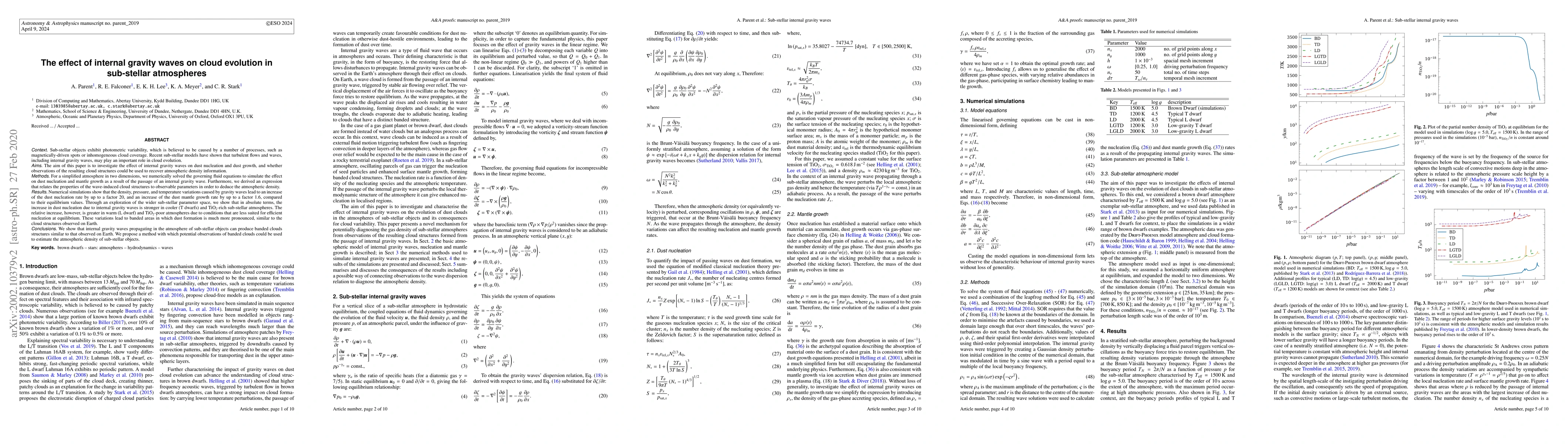 This paper investigates how internal gravity waves (IGW) influence dust nucleation and growth in sub-stellar atmospheres, finding significant increases in these processes due to wave-induced variations. It proposes a method for estimating atmospheric density using observations of wave-induced cloud structures.