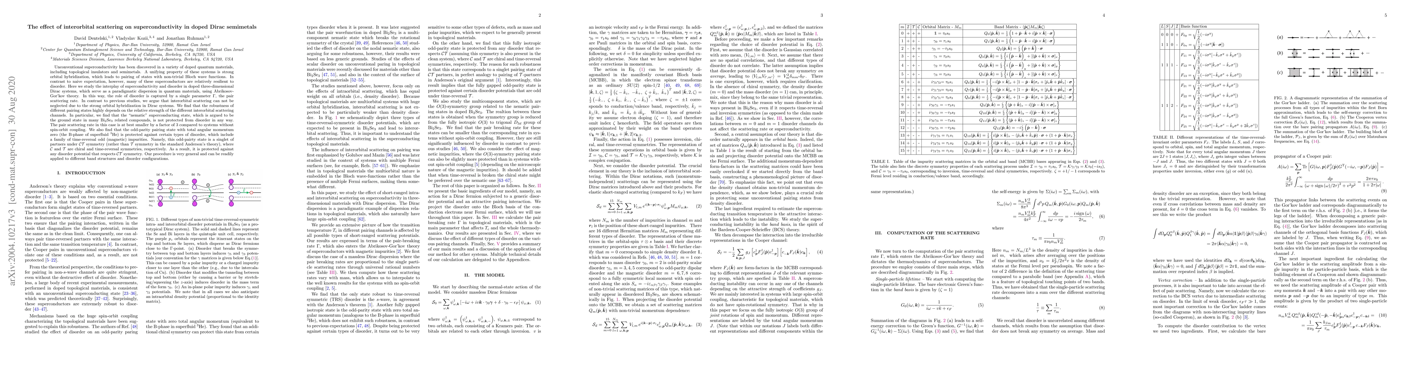 Unconventional superconductivity has been discovered in a variety of doped materials, including topological insulators, semimetals and twisted bilayers. A unifying property of these systems is strong orbital hybridization, which involves pairing of states with non-trivial Bloch wave functions. In contrast to naive expectation, many of these superconductors are relatively resilient to disorder. Here we study the effects of a generic disorder on superconductivity in doped 3D Dirac systems, which serve as a paradigmatic example for the dispersion near a band crossing point. We argue that due to strong orbital hybridization, interorbital scattering processes are naturally present and must be taken into account. We calculate the reduction of the critical temperature for a variety of pairing states and scattering channels using Abrikosov-Gor'kov theory. In that way, the role of disorder is captured by a single parameter $\Gamma$, the pair scattering rate. This procedure is very general and can be readily applied to different band structures and disorder configurations. Our results show that interorbital scattering has a significant effect on superconductivity, where the robustness of different pairing states highly depends on the relative strength of the different interorbital scattering channels. Our analysis also reveals a protection, analogous to the Anderson's theorem, of the odd-parity pairing state with total angular momentum zero (the B-phase of superfluid $^3$He). This odd-pairty state is a singlet of partners under $\mathcal{CT}$ symmetry (rather than $\mathcal{T}$ symmetry in the standard Anderson's theory), where $\mathcal{C}$ and $\mathcal{T}$ are chiral and time-reversal symmetries, respectively. As a result, it is protected against any disorder potential that respects $\mathcal{CT}$ symmetry, which includes a family of time-reversal odd (magnetic) impurities.