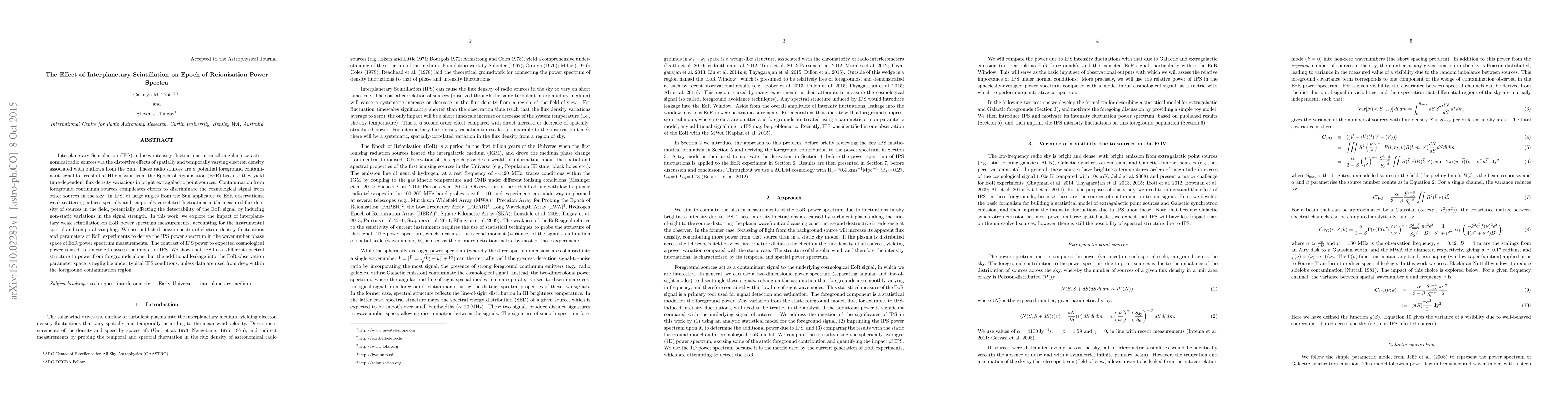 This paper investigates how Interplanetary Scintillation (IPS) affects the detectability of the Epoch of Reionisation (EoR) signal by analyzing its influence on EoR power spectra. It finds that while IPS has a distinct spectral structure, its impact on EoR measurements is negligible under typical conditions, except when data from regions heavily contaminated by foregrounds are used.