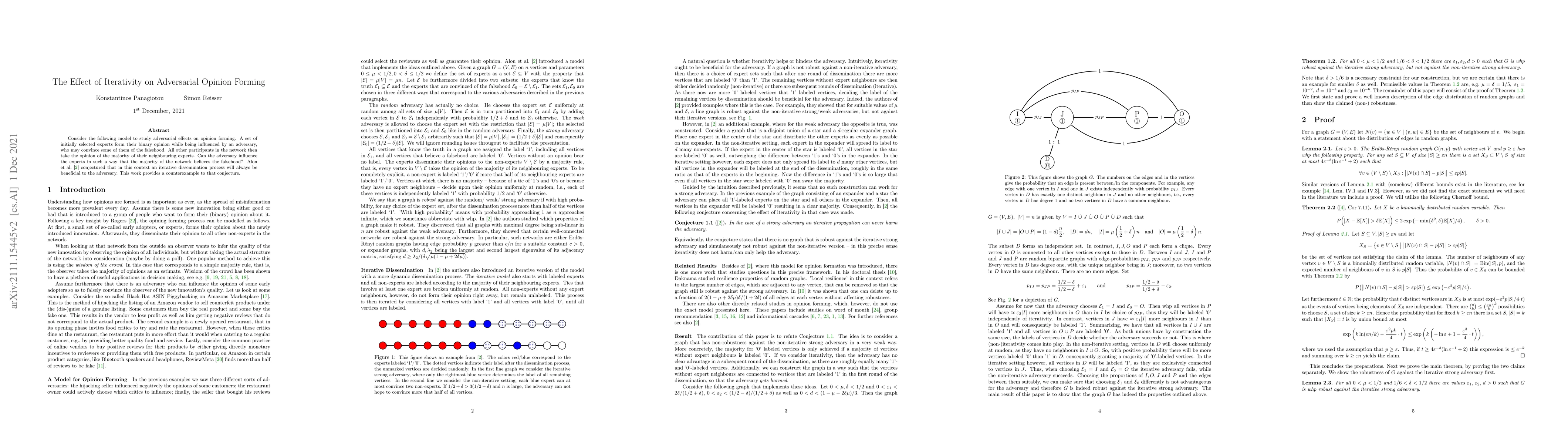 Consider the following model to study adversarial effects on opinion forming. A set of initially selected experts form their binary opinion while being influenced by an adversary, who may convince some of them of the falsehood. All other participants in the network then take the opinion of the majority of their neighbouring experts. Can the adversary influence the experts in such a way that the majority of the network believes the falsehood? Alon et al. [1] conjectured that in this context an iterative dissemination process will always be beneficial to the adversary. This work provides a counterexample to that conjecture. [1] N. Alon, M. Feldman, O. Lev, and M. Tennenholtz. How Robust Is the Wisdom of the Crowds? In Proceedings of the 24th International Joint Conference on Artificial Intelligence (IJCAI 2015), pages 2055-2061, 2015.