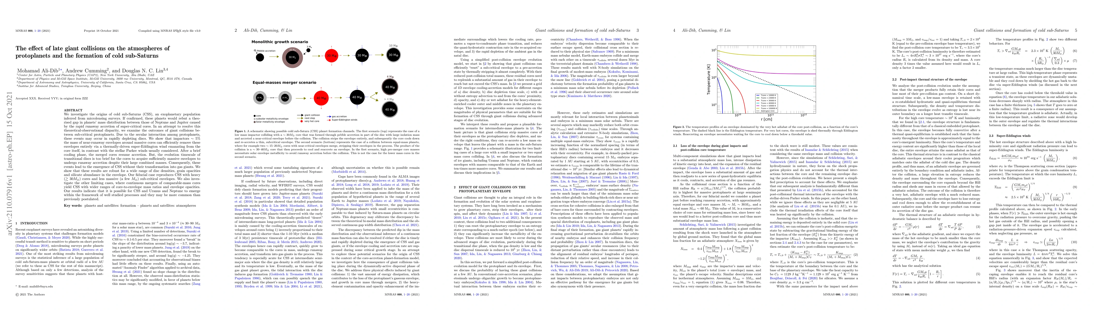 This paper explores how late giant collisions between sub-critical protoplanets can lead to the formation of cold sub-Saturns (CSS) without the planets evolving into gas giants. The study finds that these collisions can strip away protoplanetary envelopes, preventing runaway accretion and resulting in CSS with heavy cores and thin atmospheres.