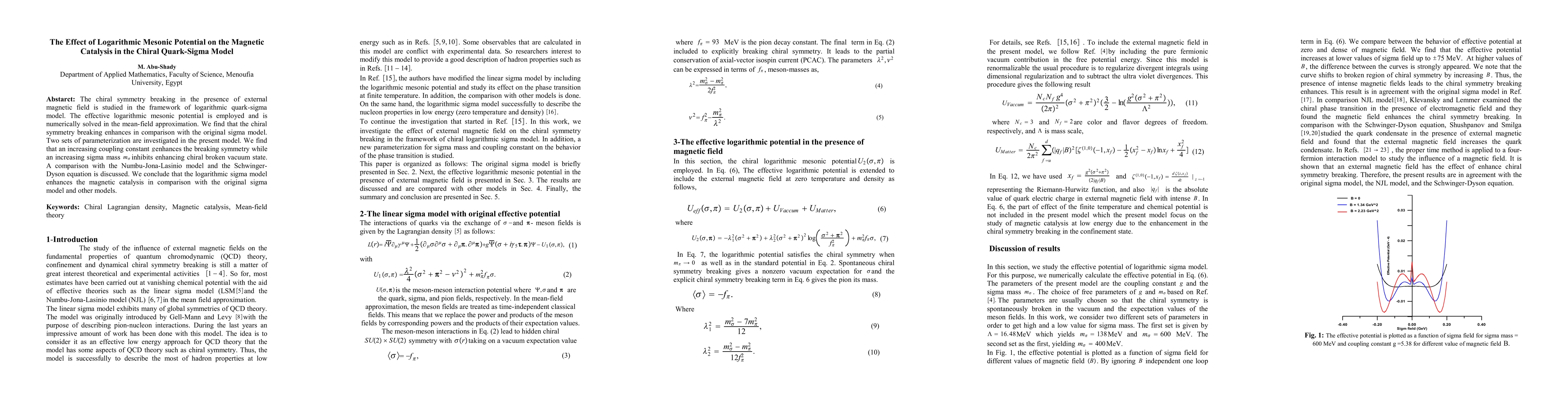 This paper investigates chiral symmetry breaking in a logarithmic quark-sigma model under an external magnetic field, finding that it enhances compared to the original sigma model. The study concludes that the logarithmic mesonic potential strengthens magnetic catalysis, as demonstrated through numerical solutions and comparisons with the Nambu-Jona-Lasinio model and Schwinger-Dyson equation.