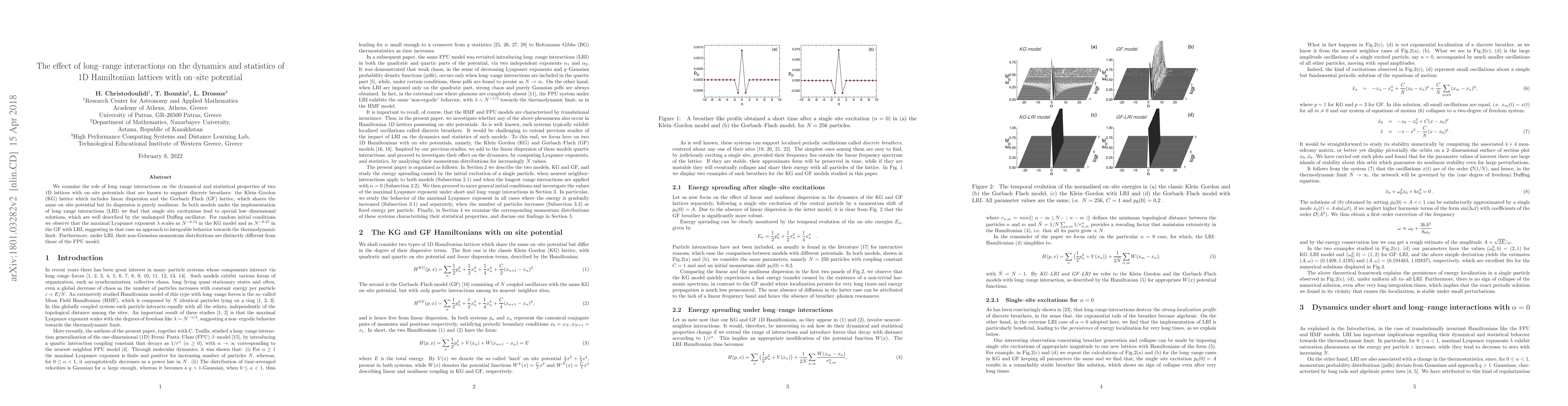 This paper investigates the impact of long-range interactions on the dynamics of 1D lattices, specifically the Klein-Gordon and Gorbach-Flach lattices, showing that these interactions lead to distinct low-dimensional solutions and influence the maximal Lyapunov exponent and momentum distributions differently compared to short-range interactions.