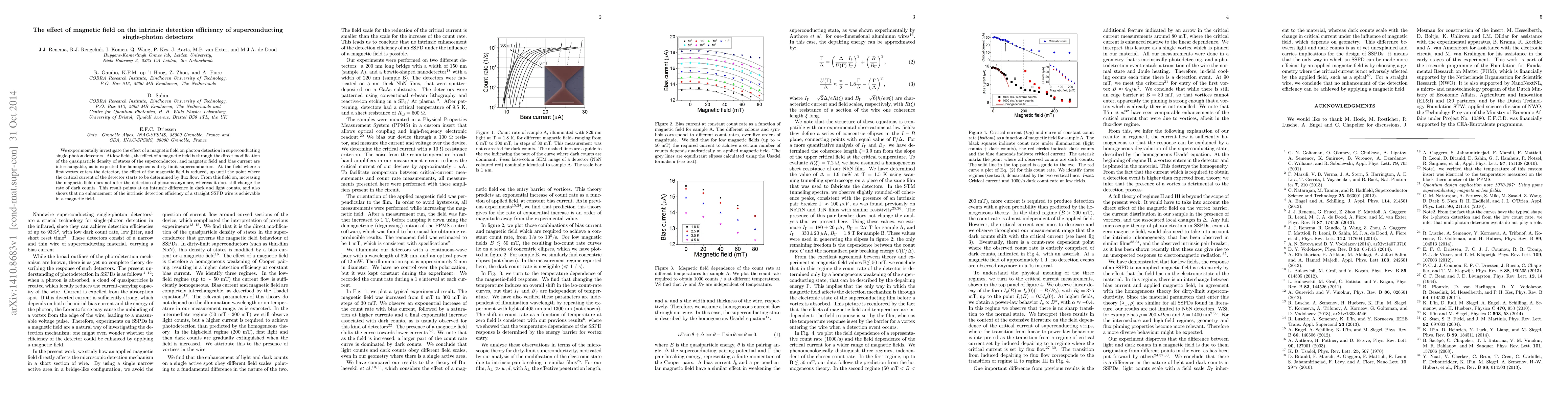 This study experimentally investigates how magnetic fields affect the detection efficiency of superconducting single-photon detectors. The magnetic field modifies quasiparticle density at low fields, but its effect diminishes as vortices enter the detector, ultimately not enhancing detection efficiency.
