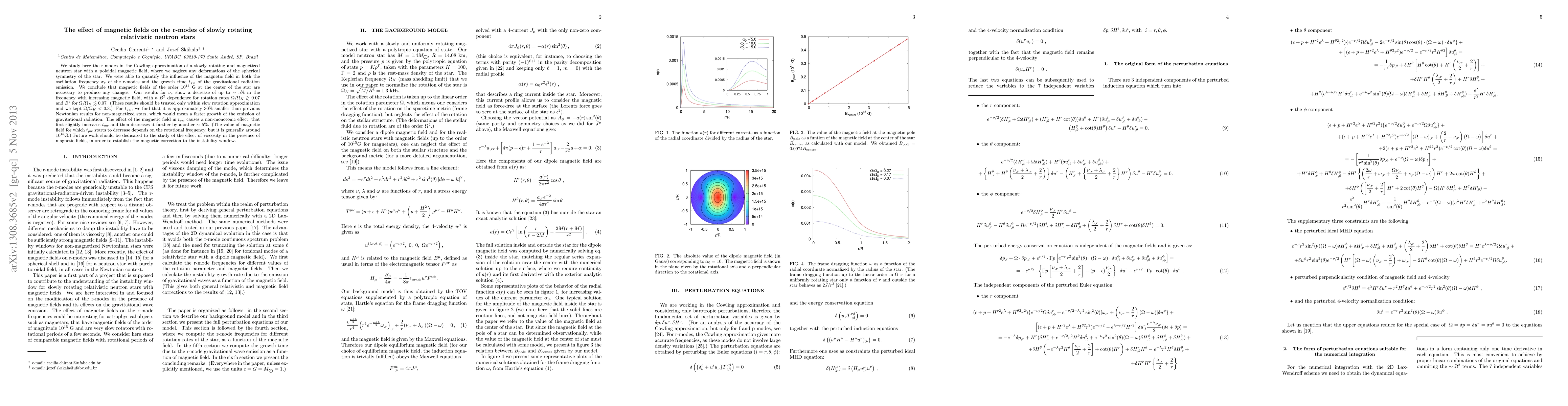 We study here the r-modes in the Cowling approximation of a slowly rotating and magnetized neutron star with a poloidal magnetic field, where we neglect any deformations of the spherical symmetry of the star. We were able to quantify the influence of the magnetic field in both the oscillation frequency $\sigma_r$ of the r-modes and the growth time $t_{gw}$ of the gravitational radiation emission. We conclude that magnetic fields of the order $10^{15}$ G at the center of the star are necessary to produce any changes. Our results for $\sigma_r$ show a decrease of up to $\sim$ $5\%$ in the frequency with increasing magnetic field, with a $B^2$ dependence for rotation rates $\Omega/\Omega_K \gtrsim 0.07$ and $B^4$ for $\Omega/\Omega_K \lesssim 0.07$. (These results should be trusted only within slow rotation approximation and we kept $\Omega/\Omega_{K}< 0.3$.) For $t_{gw}$, we find that it is approximately $30\%$ smaller than previous Newtonian results for non-magnetized stars, which would mean a faster growth of the emission of gravitational radiation. The effect of the magnetic field in $t_{gw}$ causes a non-monotonic effect, that first slightly increases $t_{gw}$ and then decreases it further by another $\sim$ $5\%$. (The value of magnetic field for which $t_{gw}$ starts to decrease depends on the rotational frequency, but it is generally around $10^{15}$G.) Future work should be dedicated to the study of the effect of viscosity in the presence of magnetic fields, in order to establish the magnetic correction to the instability window.