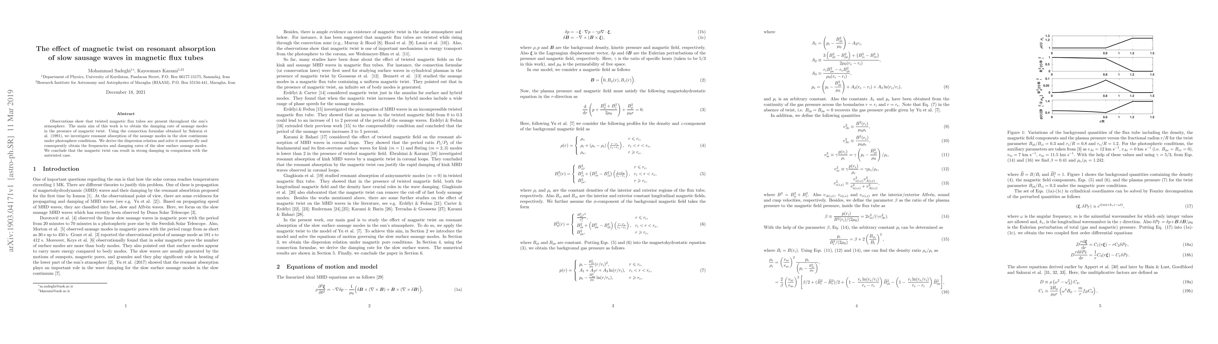 Observations show that twisted magnetic flux tubes are present throughout the sun's atmosphere. The main aim of this work is to obtain the damping rate of sausage modes in the presence of magnetic twist. Using the connection formulae obtained by Sakurai et al. (1991), we investigate resonant absorption of the sausage modes in the slow continuum under photosphere conditions. We derive the dispersion relation and solve it numerically and consequently obtain the frequencies and damping rates of the slow surface sausage modes. We conclude that the magnetic twist can result in strong damping in comparison with the untwisted case.