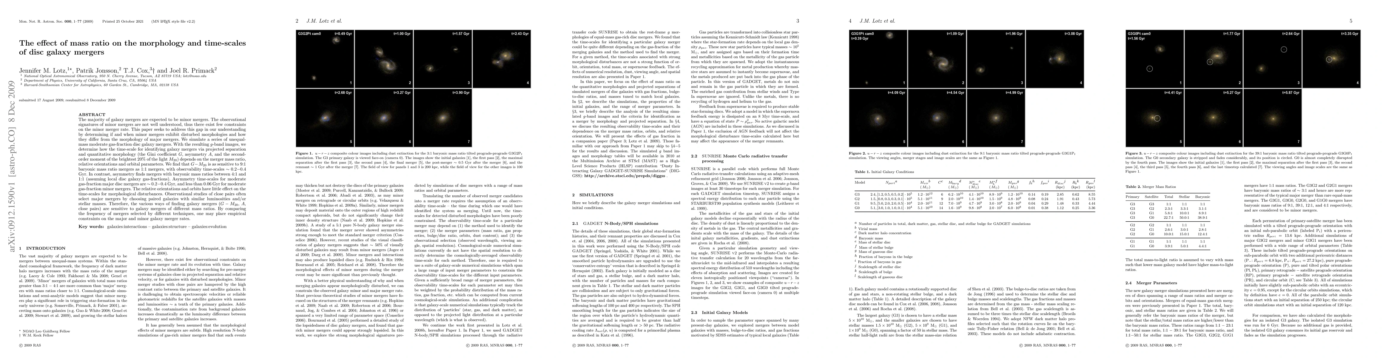 This study finds that minor galaxy mergers with baryonic mass ratios as low as 9:1 exhibit disturbed morphologies, similar to major mergers, with observable time-scales of around 0.2-0.4 Gyr.