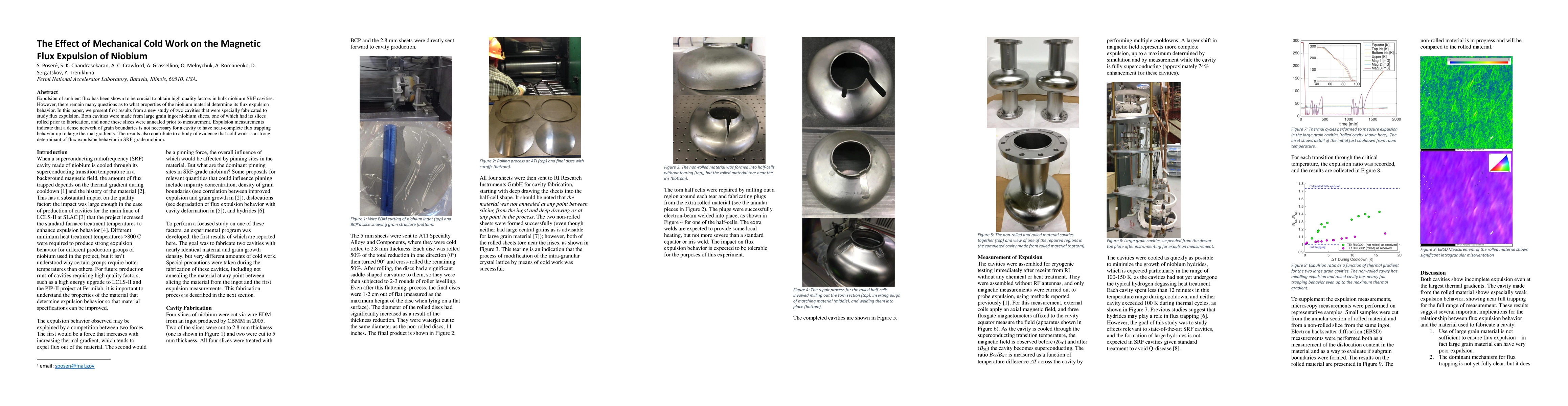This paper investigates the impact of mechanical cold work on the magnetic flux expulsion in niobium SRF cavities, finding that cold work significantly influences flux expulsion behavior, even without a dense network of grain boundaries. The study highlights the importance of cold work in achieving high-quality factors in niobium cavities.