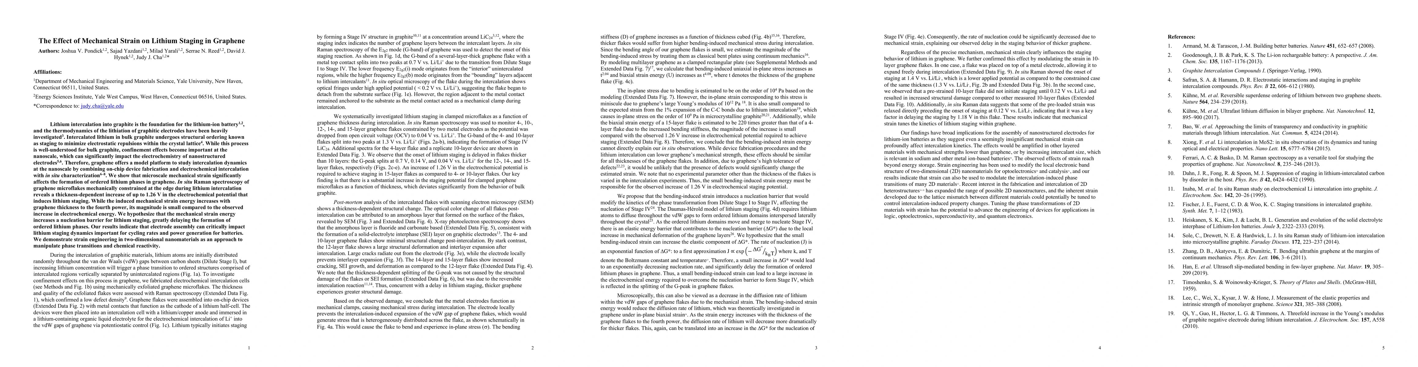 This study reveals that microscale mechanical strain significantly influences the formation of ordered lithium phases in graphene during intercalation, as shown by in situ Raman spectroscopy. The induced strain increases the electrochemical potential by up to 1.26 V, demonstrating that strain engineering can manipulate phase transitions and chemical reactivity in two-dimensional nanomaterials, impacting battery cycling rates and power generation.