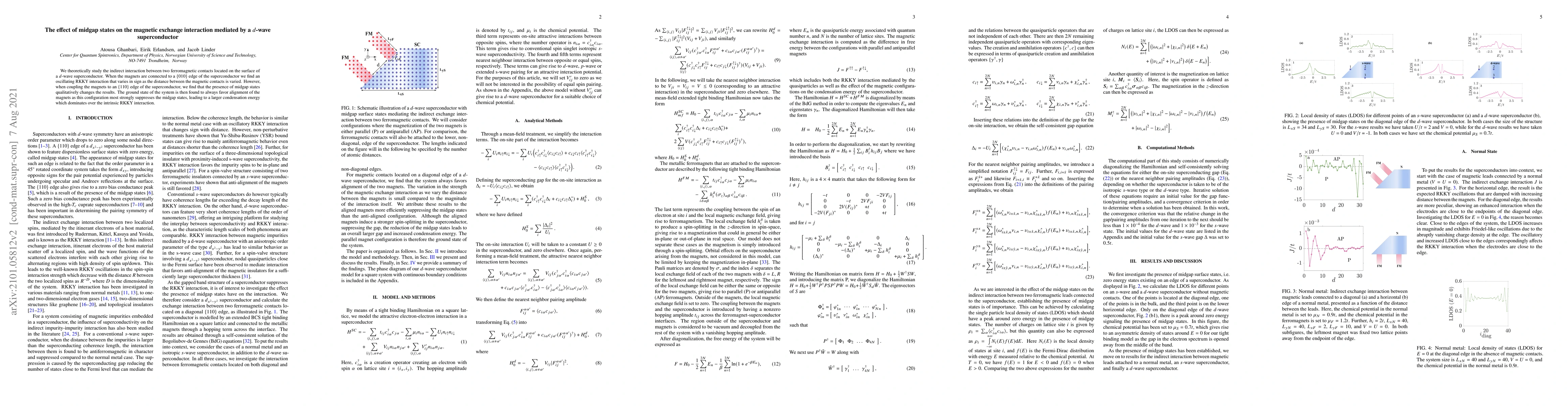 This research is significant as it demonstrates how midgap states in d-wave superconductors can alter magnetic exchange interactions, providing insights into the behavior of ferromagnetic contacts attached to superconductors.