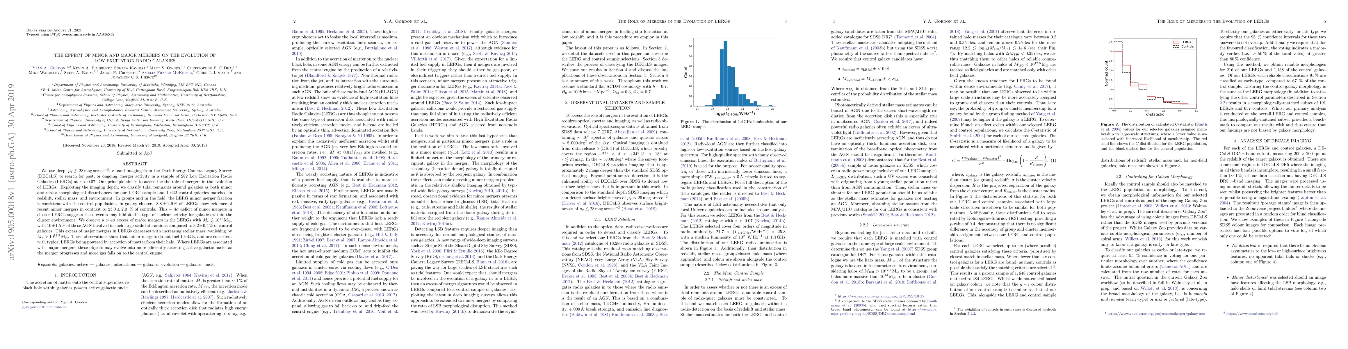 This study investigates the impact of minor and major mergers on the evolution of Low Excitation Radio Galaxies (LERGs) using deep imaging from the DECaLS survey. It finds that minor mergers do not significantly fuel LERGs, while major mergers, particularly in lower-mass LERGs, may enhance their accretion efficiency.