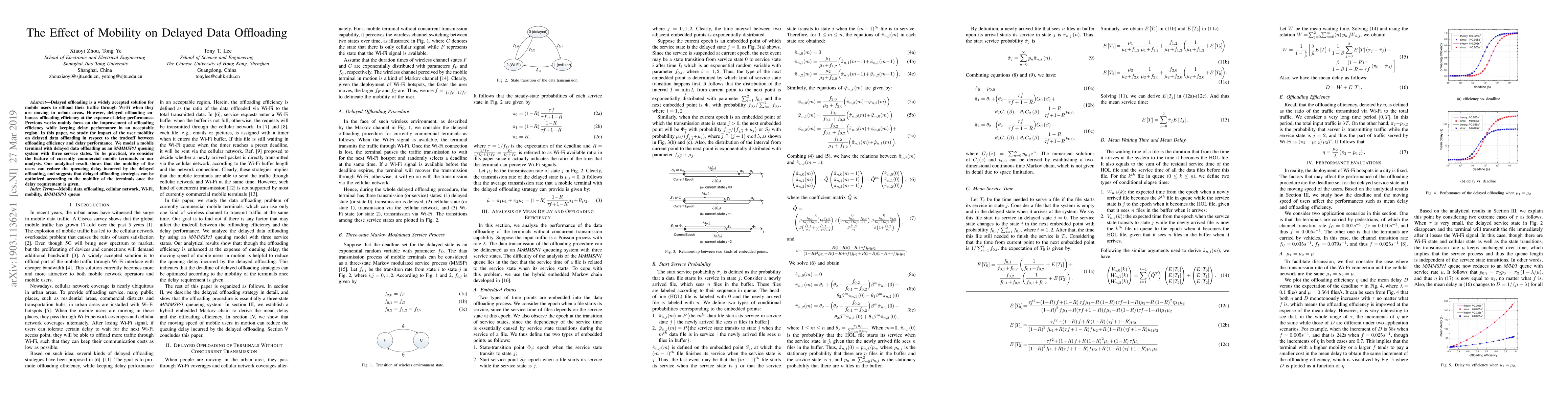 This paper investigates how user mobility affects the efficiency and delay performance of delayed data offloading in urban areas. It models the mobile terminal as an M/MMSP/1 queuing system, demonstrating that higher mobility can reduce queueing delays, suggesting optimization of offloading strategies based on terminal mobility when delay requirements are set.