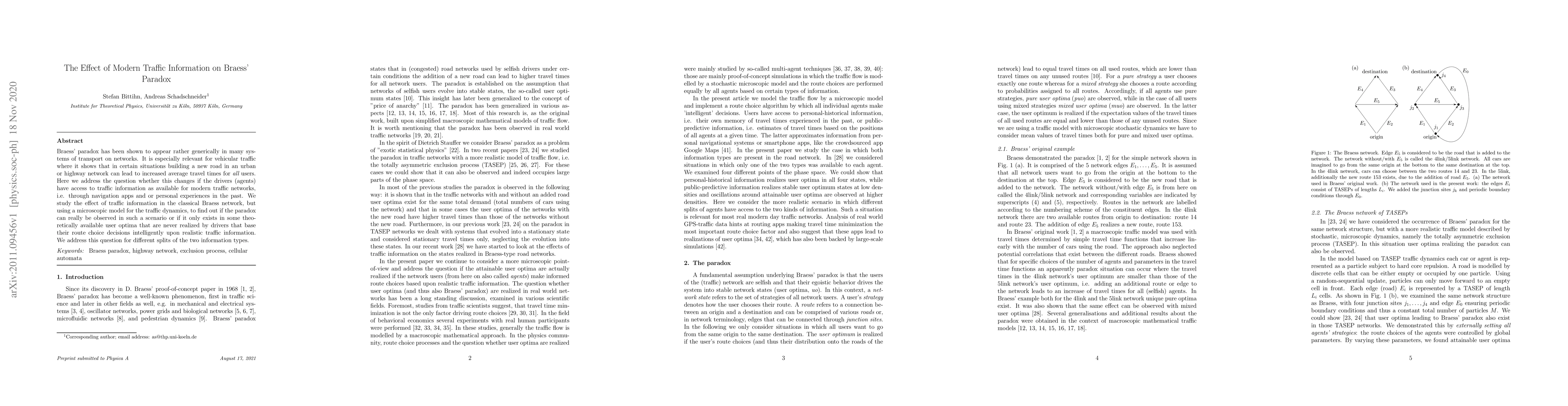 This paper investigates whether modern traffic information can mitigate Braess' paradox, where adding new roads paradoxically increases average travel times. Using a microscopic traffic model, it examines if drivers with access to real-time traffic data can avoid the paradox by making informed route choices.