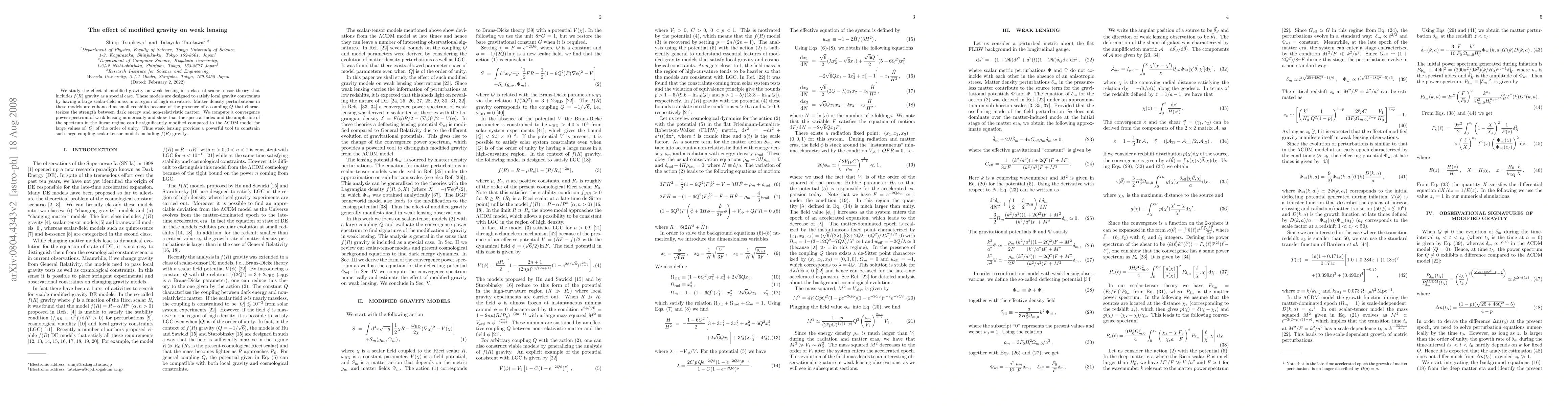 This paper investigates how modified gravity theories, particularly scalar-tensor models including $f(R)$ gravity, affect weak lensing. It finds that for large coupling values, the spectral index and amplitude of the weak lensing convergence power spectrum can differ significantly from the $\Lambda$CDM model, suggesting weak lensing as a potent tool for constraining these models.