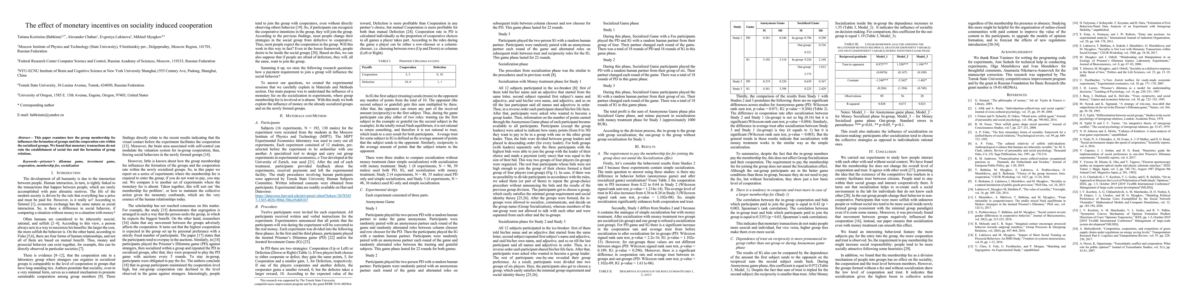 This paper examines how the group membership fee influences the formation of groups and the cooperation rate within the socialized groups. We found that monetary transactions do not ruin the establishment of social ties and the formation of group relations.