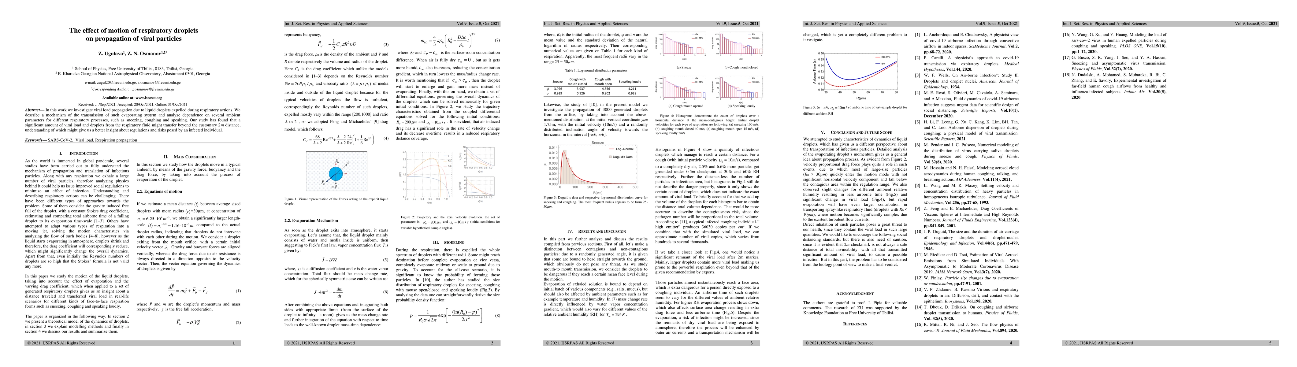 In this work we investigate viral load propagation due to liquid droplets expelled during respiratory actions. We describe a mechanism of the transmission of such evaporating system and analyze dependence on several ambient parameters for different respiratory processes, such as sneezing, coughing and speaking. Our study has found that a significant amount of viral load and droplets from the respiratory fluid might transfer beyond the customary 2m distance, understanding of which might give us a better insight about regulations and risks posed by an infected individual.