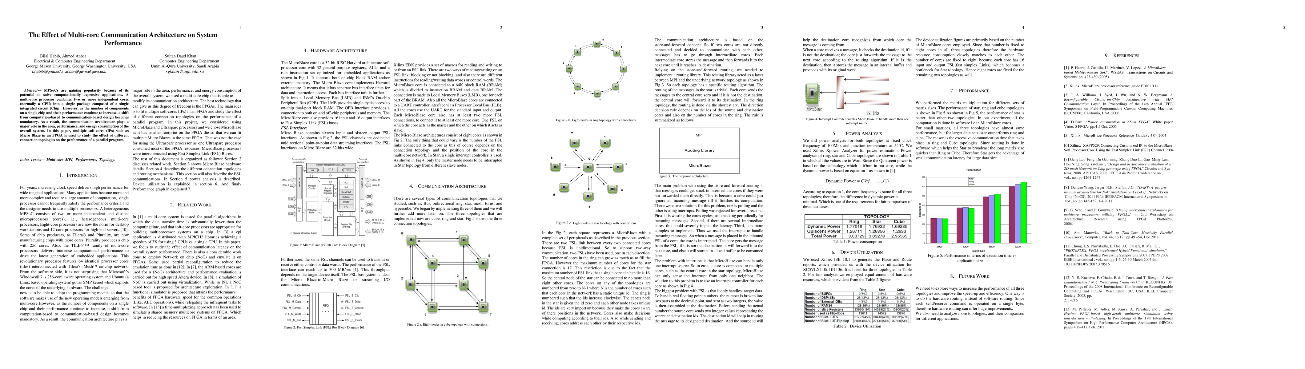 MPSoCs are gaining popularity because of its potential to solve computationally expensive applications. A multi-core processor combines two or more independent cores (normally a CPU) into a single package composed of a single integrated circuit (Chip). However, as the number of components on a single chip and their performance continue to increase, a shift from computation-based to communication-based design becomes mandatory. As a result, the communication architecture plays a major role in the area, performance, and energy consumption of the overall system. In this paper, multiple soft-cores (IPs) such as Micro Blaze in an FPGA is used to study the effect of different connection topologies on the performance of a parallel program.