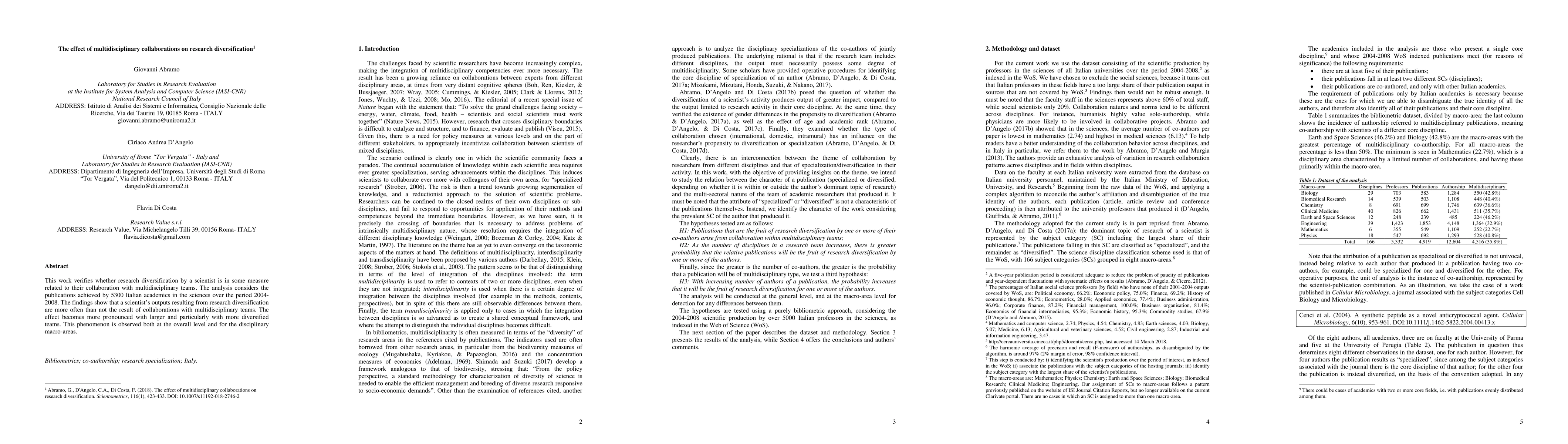 This study finds that Italian scientists' research diversification is significantly linked to their collaboration with multidisciplinary teams, with larger and more diverse teams showing a stronger effect. The results hold across all disciplinary macro-areas.