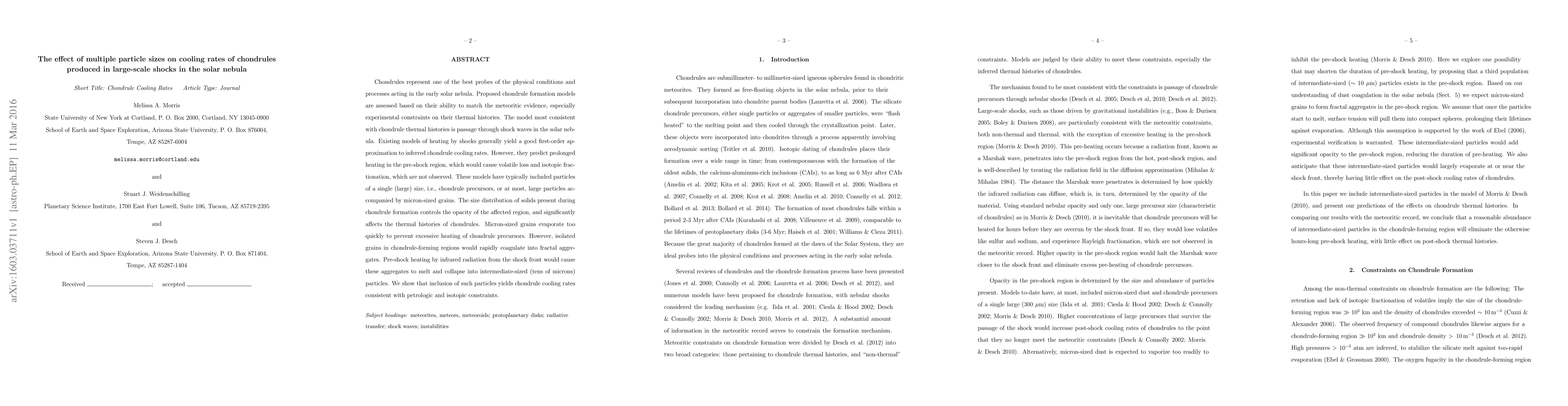 This study investigates how varying particle sizes affect the cooling rates of chondrules formed through shock waves in the solar nebula. It finds that including intermediate-sized particles, formed from coagulated micron-sized grains, better matches observed chondrule cooling rates and thermal histories compared to models with only large particles.