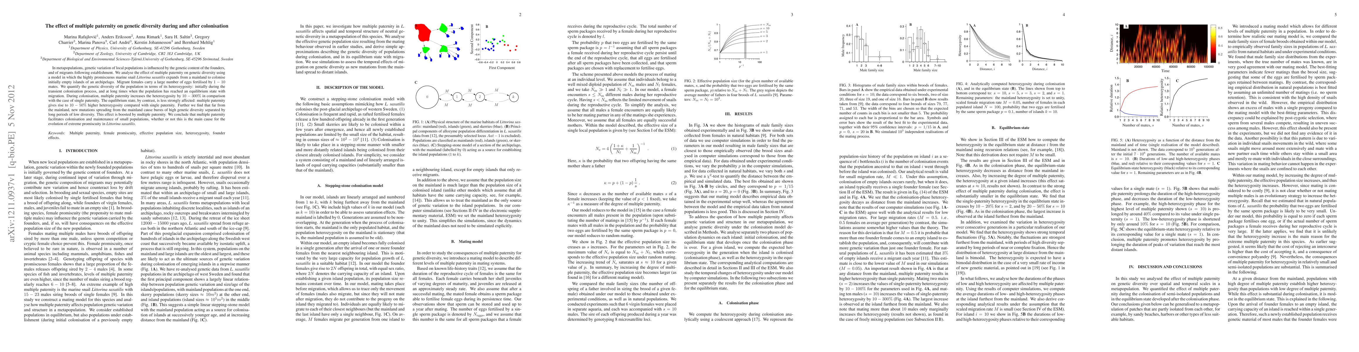 This study examines how multiple paternity in the marine snail Littorina saxatilis influences genetic diversity during and after colonisation of new islands. It finds that multiple paternity significantly boosts heterozygosity during colonisation, by 10-300%, but has a more moderate effect, 10-50%, at equilibrium.