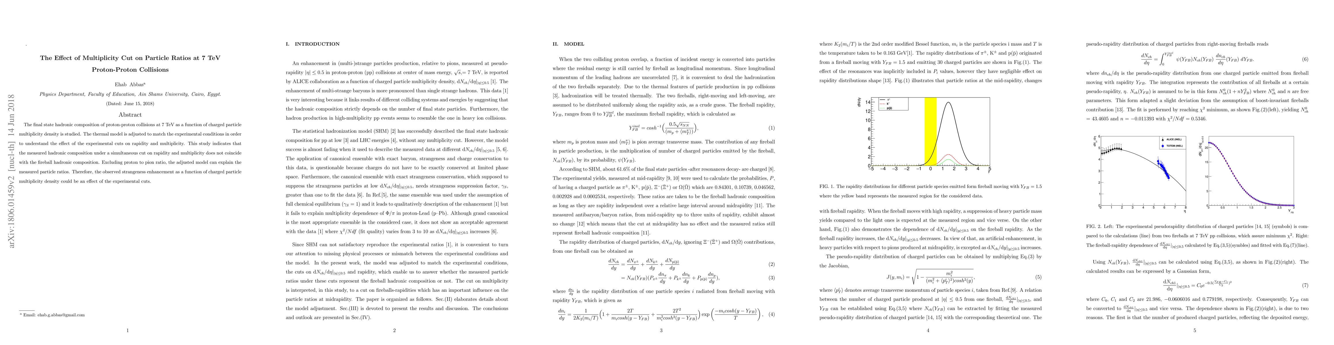 This study investigates the effect of multiplicity cuts on particle ratios in 7 TeV proton-proton collisions, finding that experimental cuts on rapidity and multiplicity alter the observed hadronic composition. The adjusted thermal model explains most measured particle ratios except for the proton to pion ratio, suggesting that observed strangeness enhancement may result from these cuts.