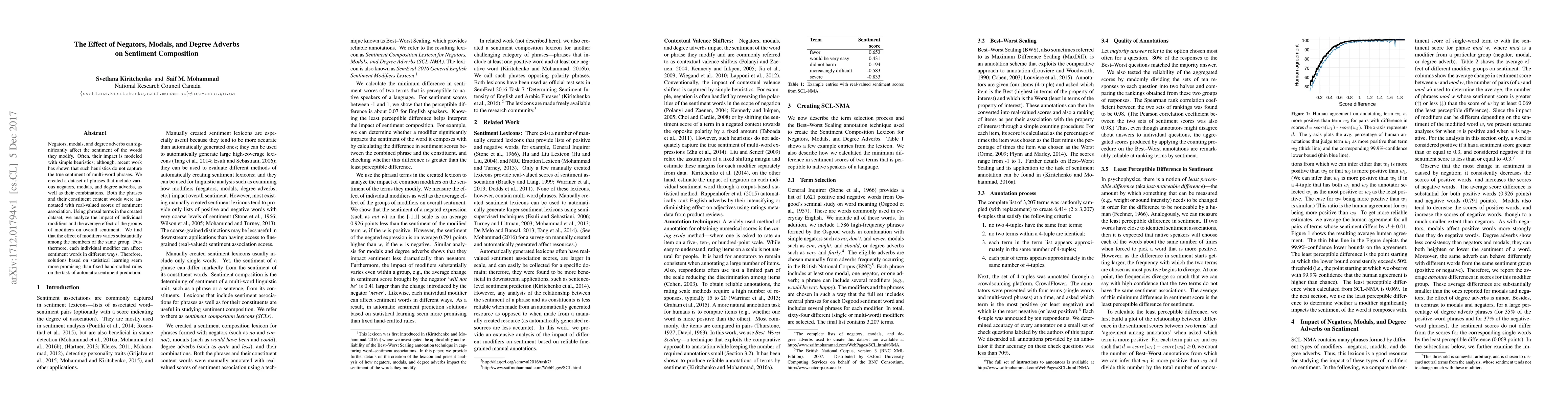 The research examines the influence of negators, modals, and degree adverbs on sentiment, finding their impact varies significantly within groups and on different sentiment words. It suggests statistical learning methods are more effective for automatic sentiment prediction than fixed rules.