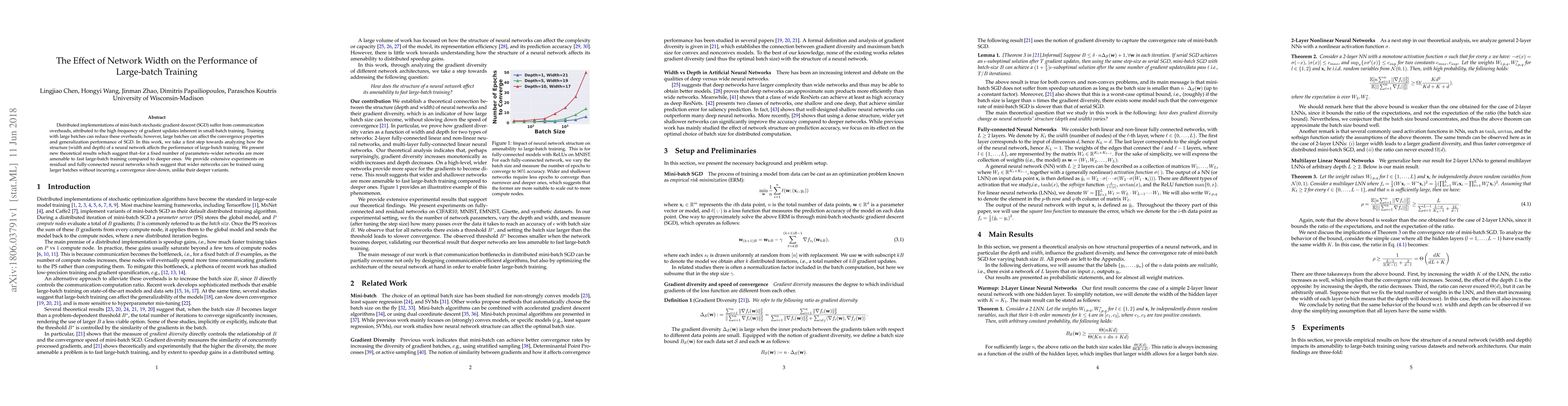 This paper investigates the impact of network width on the performance of large-batch training in neural networks, finding that wider networks are more effective for large-batch training compared to deeper ones. Theoretical results and experiments on residual and fully-connected networks show that wider networks can utilize larger batches without convergence issues.