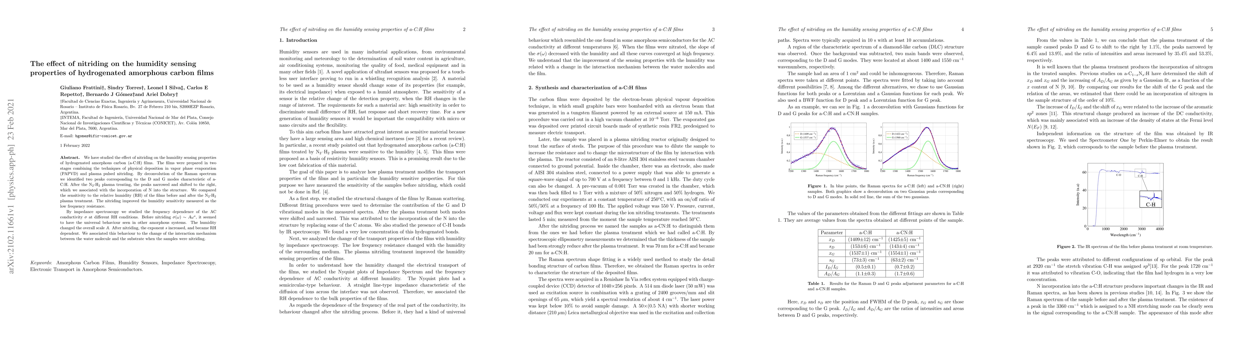 This research investigates the impact of nitriding on hydrogenated amorphous carbon films' humidity sensitivity. Using PAPVD and plasma pulsed nitriding, the study finds that nitriding enhances humidity sensitivity by altering the interaction mechanism between water molecules and the substrate, as evidenced by changes in Raman spectrum peaks and AC conductivity frequency dependence.