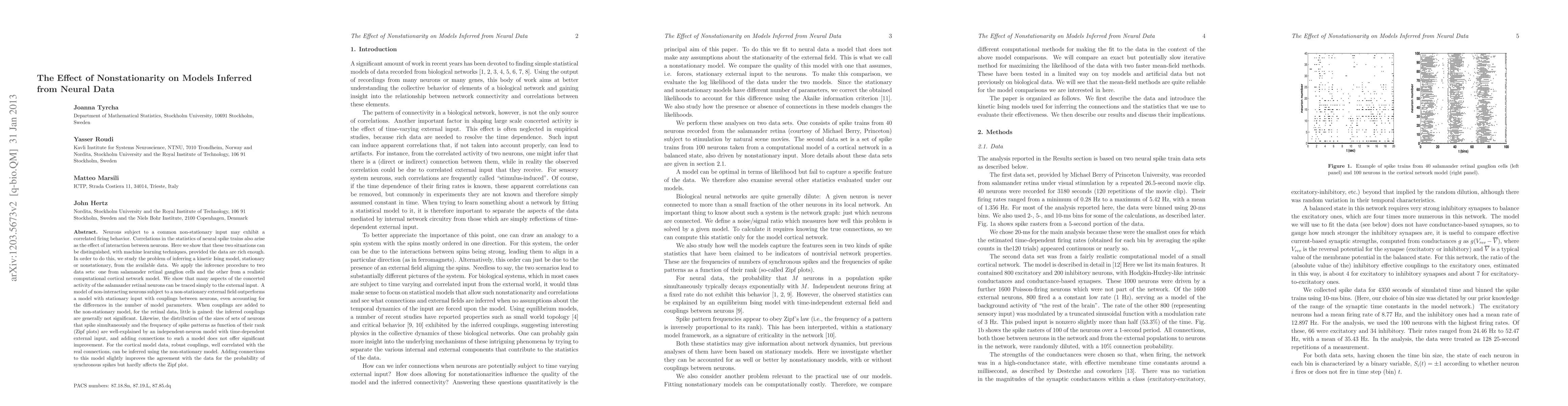 Neurons subject to a common non-stationary input may exhibit a correlated firing behavior. Correlations in the statistics of neural spike trains also arise as the effect of interaction between neurons. Here we show that these two situations can be distinguished, with machine learning techniques, provided the data are rich enough. In order to do this, we study the problem of inferring a kinetic Ising model, stationary or nonstationary, from the available data. We apply the inference procedure to two data sets: one from salamander retinal ganglion cells and the other from a realistic computational cortical network model. We show that many aspects of the concerted activity of the salamander retinal neurons can be traced simply to the external input. A model of non-interacting neurons subject to a non-stationary external field outperforms a model with stationary input with couplings between neurons, even accounting for the differences in the number of model parameters. When couplings are added to the non-stationary model, for the retinal data, little is gained: the inferred couplings are generally not significant. Likewise, the distribution of the sizes of sets of neurons that spike simultaneously and the frequency of spike patterns as function of their rank (Zipf plots) are well-explained by an independent-neuron model with time-dependent external input, and adding connections to such a model does not offer significant improvement. For the cortical model data, robust couplings, well correlated with the real connections, can be inferred using the non-stationary model. Adding connections to this model slightly improves the agreement with the data for the probability of synchronous spikes but hardly affects the Zipf plot.