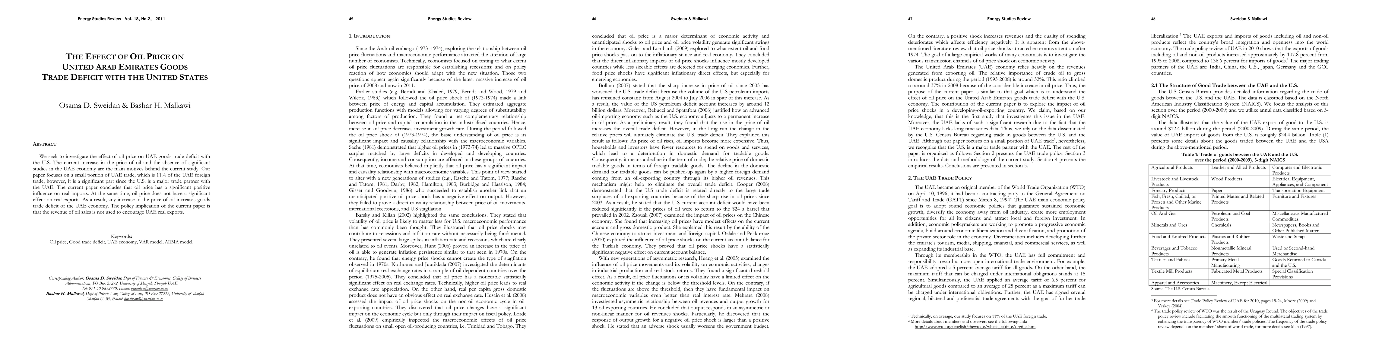This study examines the impact of oil prices on the UAE's goods trade deficit with the U.S., finding that higher oil prices significantly increase real imports without affecting real exports, thereby widening the trade deficit. The research highlights the need for policies to boost real exports despite high oil revenues.