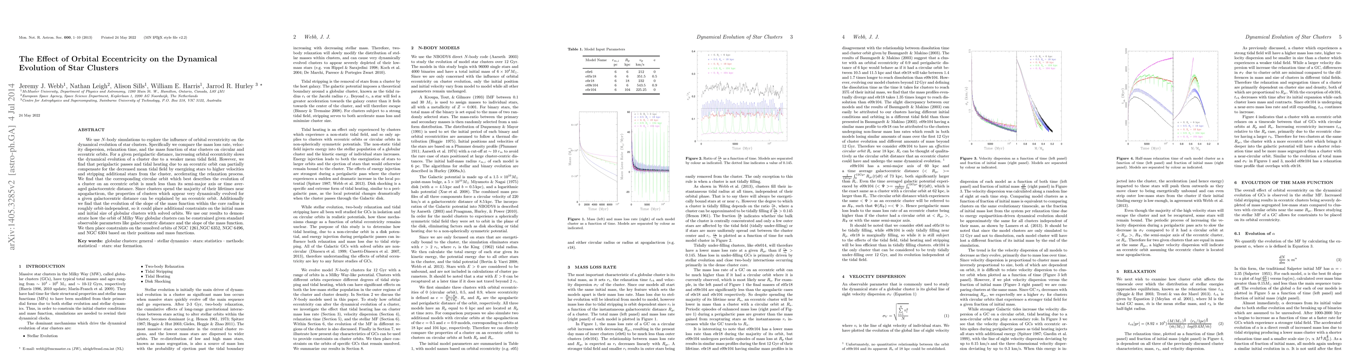 This study uses N-body simulations to investigate how orbital eccentricity affects star cluster dynamics, finding that while higher eccentricity generally slows evolution due to a weaker tidal field, perigalactic passes can accelerate relaxation by energizing stars. The research also demonstrates that the effective circular orbit describing cluster dynamics is much smaller than the semi-major axis, and proposes constraints on the orbits of Milky Way globular clusters based on observable parameters and mass functions.