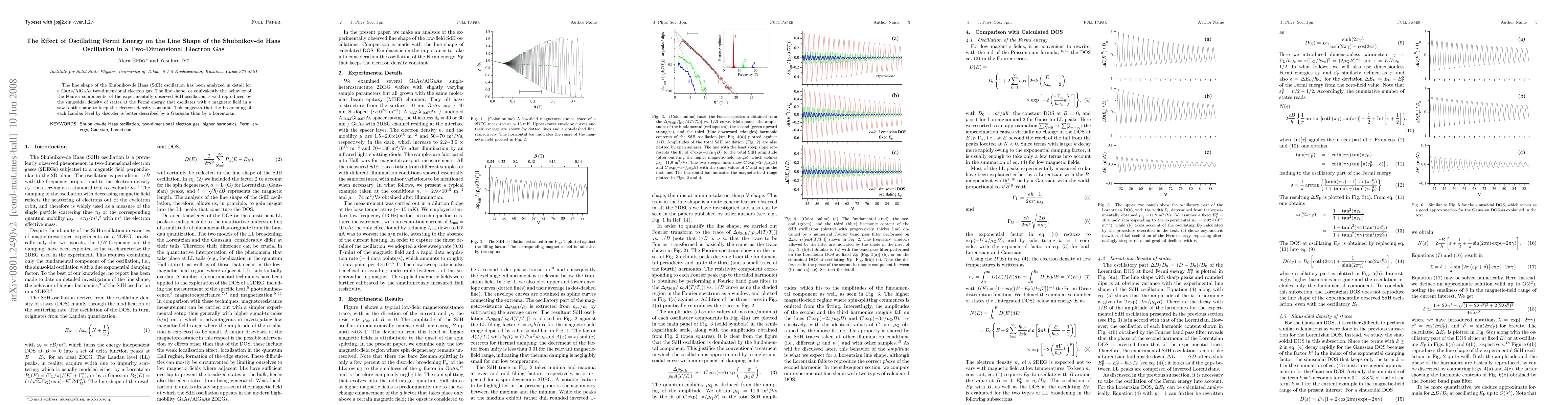 The study investigates the line shape of the Shubnikov-de Haas oscillation in a GaAs/AlGaAs two-dimensional electron gas, revealing that a sinusoidal Fermi energy oscillating in a saw-tooth pattern explains the observed Fourier components. The results suggest Gaussian broadening of Landau levels due to disorder, rather than Lorentzian.