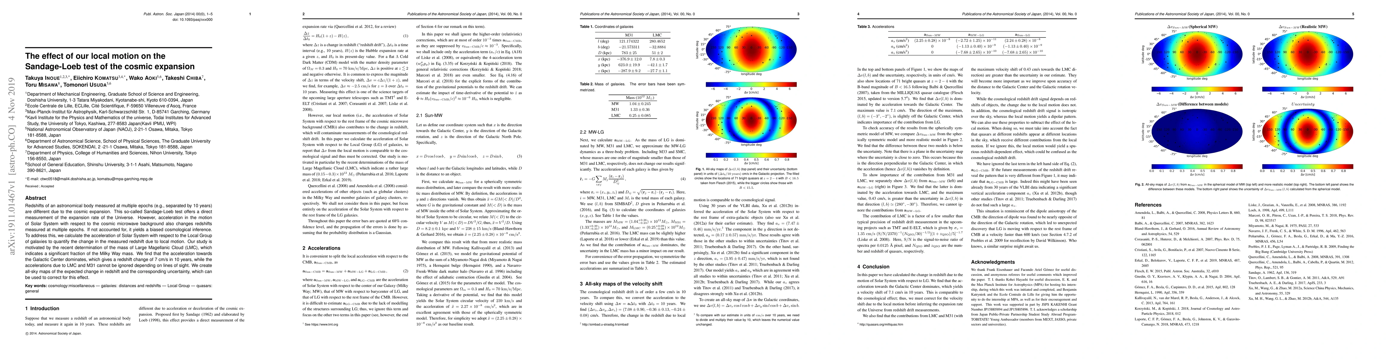Redshifts of an astronomical body measured at multiple epochs (e.g., separated by 10 years) are different due to the cosmic expansion. This so-called Sandage-Loeb test offers a direct measurement of the expansion rate of the Universe. However, acceleration in the motion of Solar System with respect to the cosmic microwave background also changes redshifts measured at multiple epochs. If not accounted for, it yields a biased cosmological inference. To address this, we calculate the acceleration of Solar System with respect to the Local Group of galaxies to quantify the change in the measured redshift due to local motion. Our study is motivated by the recent determination of the mass of Large Magellanic Cloud (LMC), which indicates a significant fraction of the Milky Way mass. We find that the acceleration towards the Galactic Center dominates, which gives a redshift change of 7 cm/s in 10 years, while the accelerations due to LMC and M31 cannot be ignored depending on lines of sight. We create all-sky maps of the expected change in redshift and the corresponding uncertainty, which can be used to correct for this effect.
