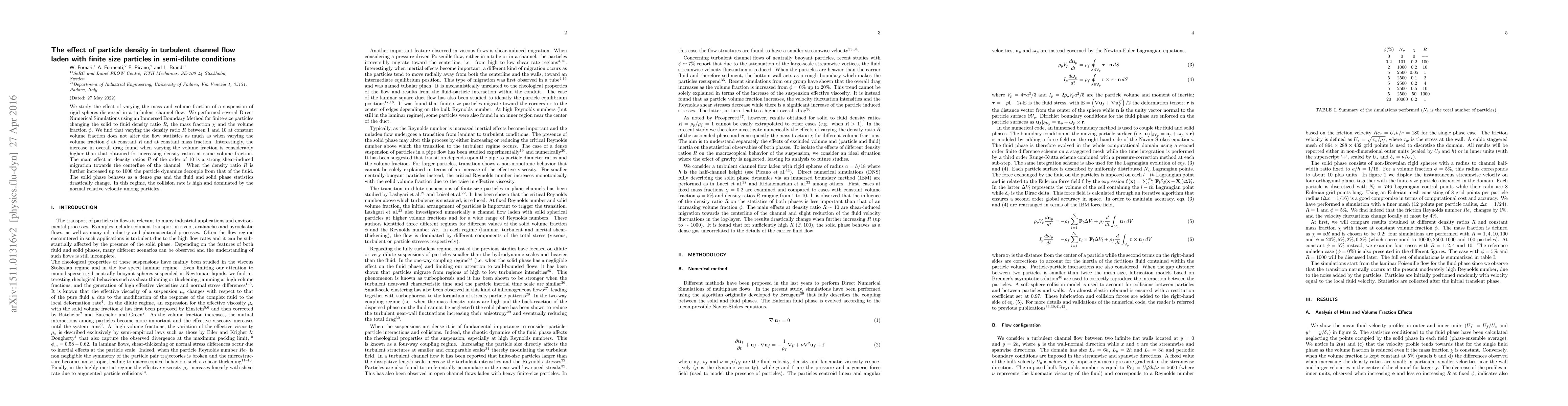 We study the effect of varying the mass and volume fraction of a suspension of rigid spheres dispersed in a turbulent channel flow. We performed several Direct Numerical Simulations using an Immersed Boundary Method for finite-size particles changing the solid to fluid density ratio, the mass fraction and the volume fraction. We find that varying the density ratio between 1 and 10 at constant volume fraction does not alter the flow statistics as much as when varying the volume fraction at constant and at constant mass fraction. Interestingly, the increase in overall drag found when varying the volume fraction is considerably higher than that obtained for increasing density ratios at same volume fraction. The main effect at density ratios of the order of 10 is a strong shear-induced migration towards the centerline of the channel. When the density ratio is further increased up to 1000 the particle dynamics decouple from that of the fluid. The solid phase behaves as a dense gas and the fluid and solid phase statistics drastically change. In this regime, the collision rate is high and dominated by the normal relative velocity among particles.