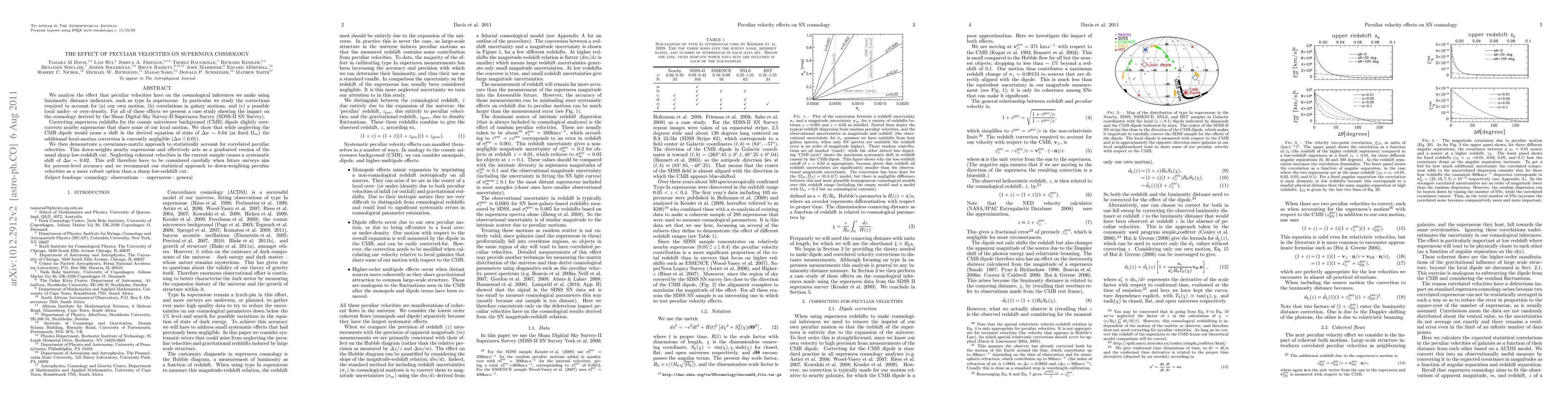 This paper examines the impact of peculiar velocities on supernova cosmology, focusing on corrections due to our own motion, effects of large-scale structure correlations, and uncertainties from local density fluctuations. It finds that while neglecting the CMB dipole causes a shift in the derived equation of state, additional local-motion corrections are currently negligible, but correlated peculiar velocities could cause a systematic shift of ~2% in the preferred value of w, necessitating careful consideration for future surveys.