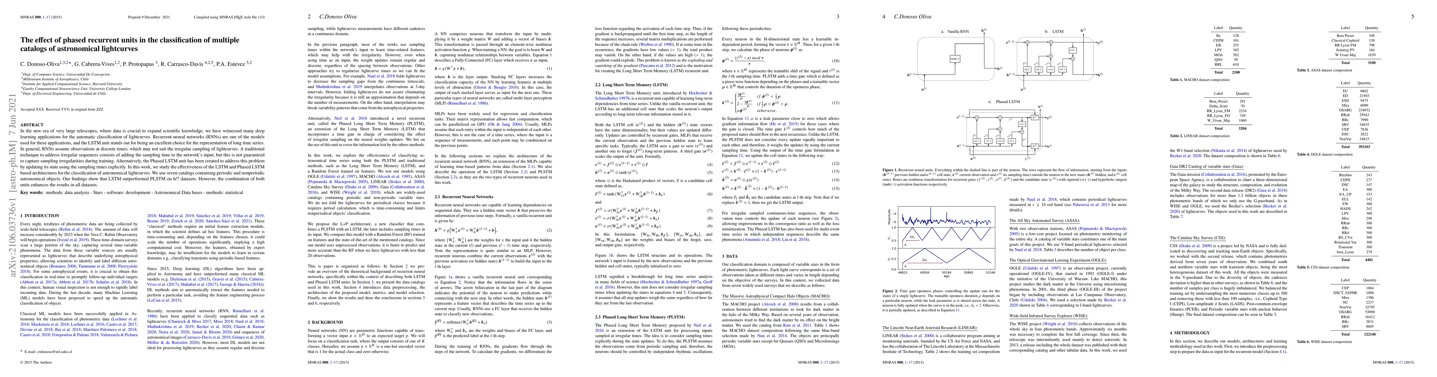 Researchers compared two neural network architectures, LSTM and Phased LSTM, for classifying astronomical lightcurves, finding that the combined approach outperformed individual models in six of seven datasets.