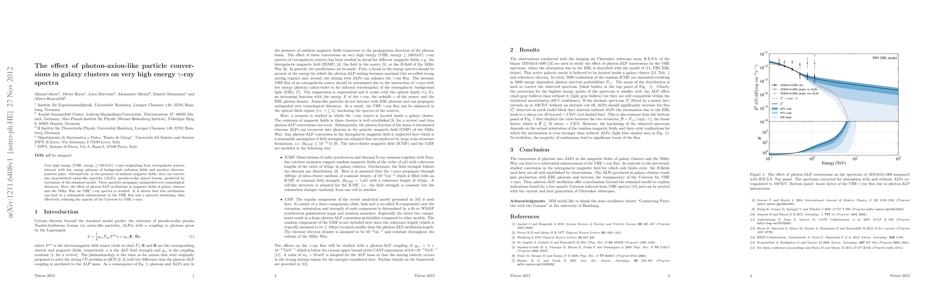 This paper investigates how photon-axion-like particle conversions in galaxy clusters affect very high energy gamma-ray spectra. It finds that these conversions can significantly enhance VHE flux and harden the spectrum, thereby reducing the Universe's opacity to such gamma rays.