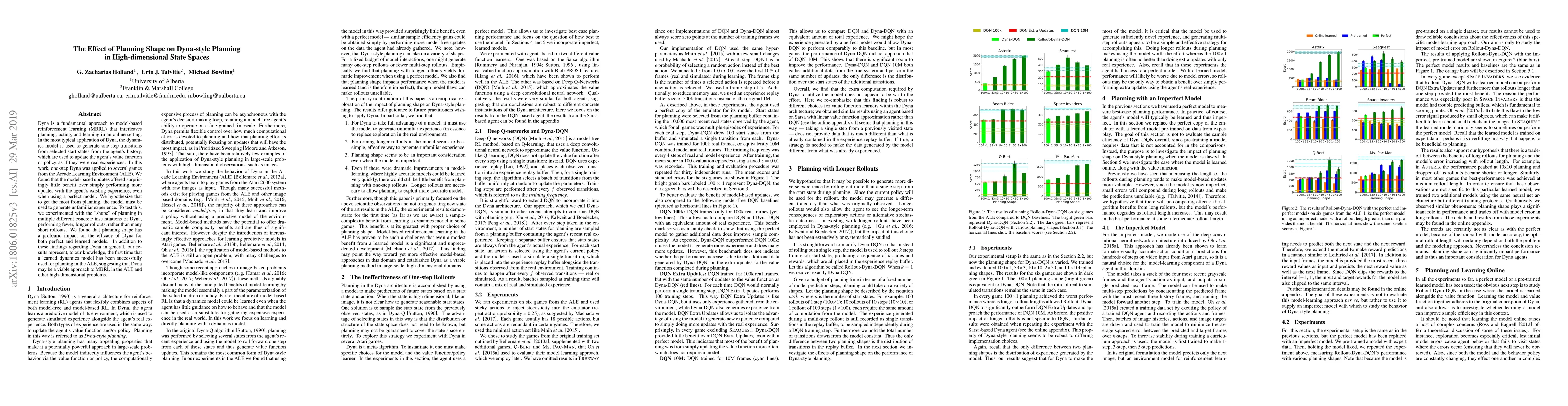 This paper explores how the shape of planning affects Dyna-style model-based reinforcement learning in high-dimensional state spaces, finding that longer rollouts provide more benefit than many short ones. It concludes that Dyna can be effective in the Arcade Learning Environment when used to generate unfamiliar experiences.